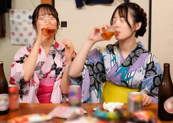 【美少女合コン】部屋に連れ込まれた浴衣娘二人!ノリノリでちんぽしゃぶって生入れファック